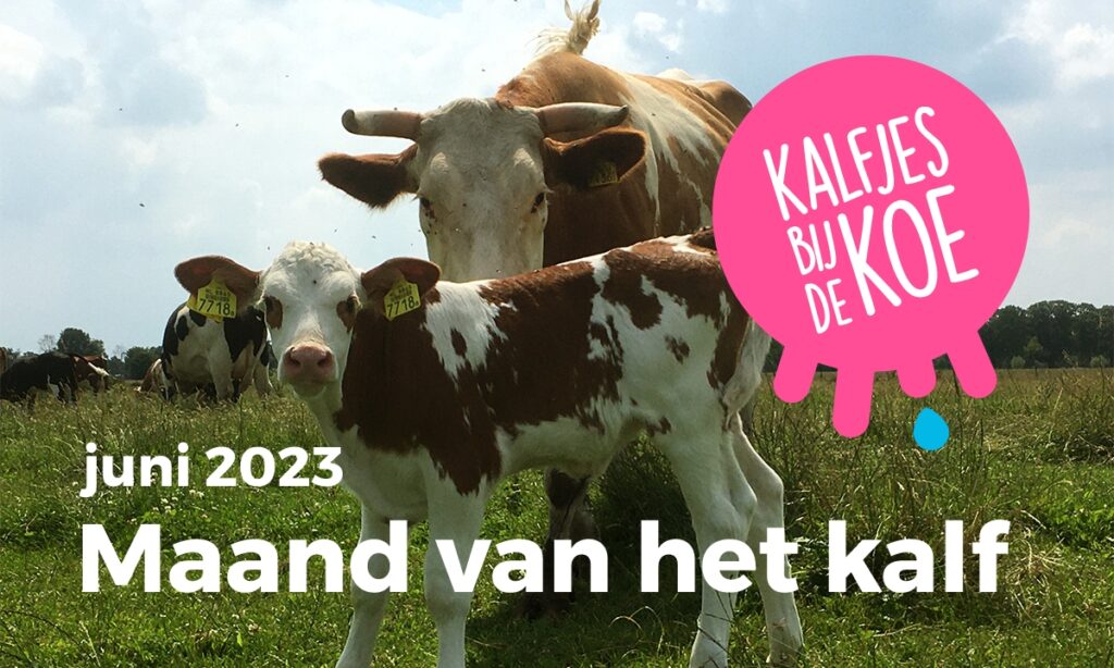 Kalfjes die drinken bij hun moeder. Hoewel dat de normaalste zaak van de wereld lijkt, is dat hoogst uitzonderlijk. Slechts bij zo’n 20 melkveehouders van de dertienduizend is dat het geval. In juni willen we hier met de ‘Maand van het Kalf’ verbetering in brengen. In het hele land zijn er open dagen voor consumenten, kennissessies voor boeren en diverse acties van dierenwelzijnsorganisaties en de winkelketens Odin en Ekoplaza die #kalfbijkoe zuivel in het zonnetje zetten.